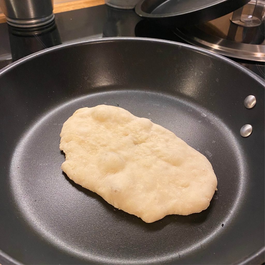 Jak na powierzchni ciasta pojawią się bąbelki, przerzuć je na drugą stronę i podpiekaj jeszcze chwilkę.